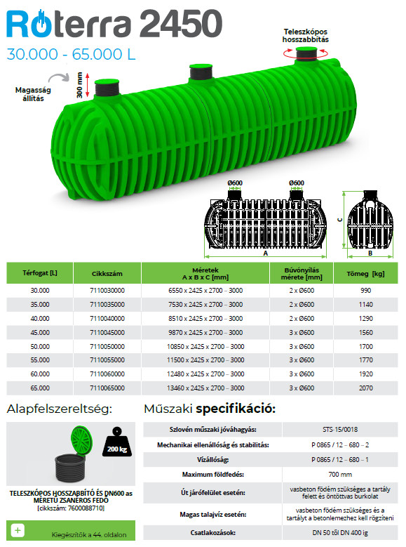 50.000 L RoTerra 2450 esővízgyűjtő, tüzivíz tartály