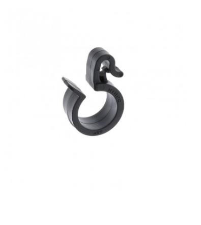 Az akasztóhorog 20 mm-es PE cső vagy csepegtető cső dróthoz való rögzítését segíti elő. Leggyakrabban gyümölcsösökben vagy házikertekben alkalmazott módszer, ahol a csepegtető csövet vagy a csepegtető gombákkal ellátott PE csövet egy kb 0,5 méteres magasságban futó dróthoz rögzíthetjük. Ennél a megoldásnál a növények körüli terület megművelhető, mivel a cső nem közvetlenül a földre lett telepítve. Az akasztóhorog könnyen felszerelhető, stabilan rögzíti a csövet a kívánt helyre.