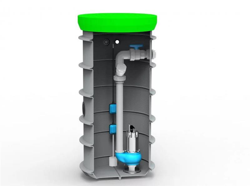 RoPump Ø600 x 1500 szennyvízátemelő szivattyúállomás egy Pentax DG102 szivattyúval