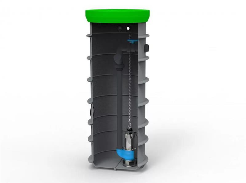 RoPump Ø600 x 1800 szennyvízátemelő szivattyúállomás egy Pentax DG102G szivattyúval